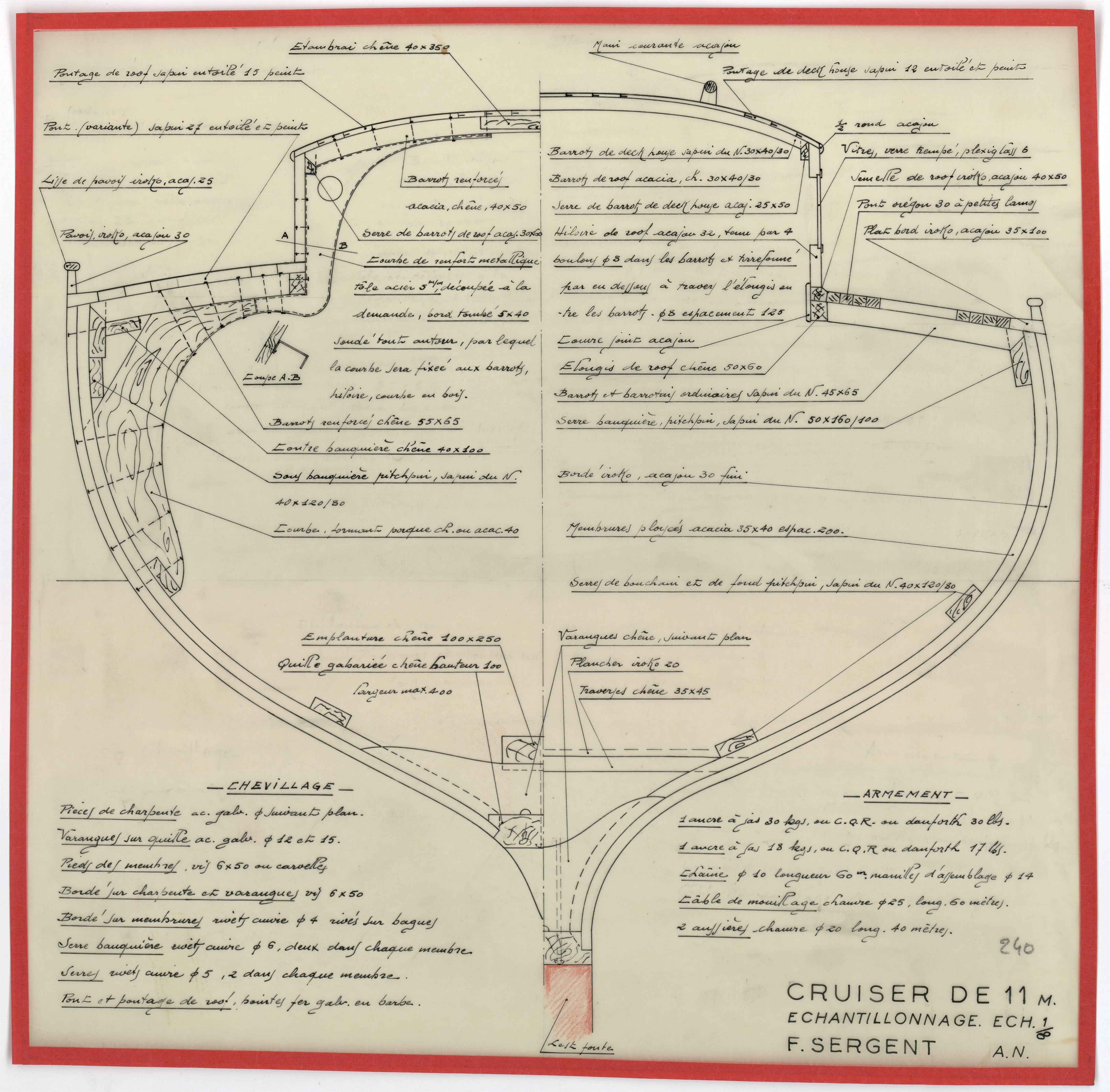 Les bénévoles des Archives du Yachting ont choisi d’utiliser des noms de plans susceptibles de convenir à d’autres fonds d’architectes navals à venir. Cela peut expliquer les différences d’appellation entre les noms donnés par François Sergent lui-même et ceux du site.