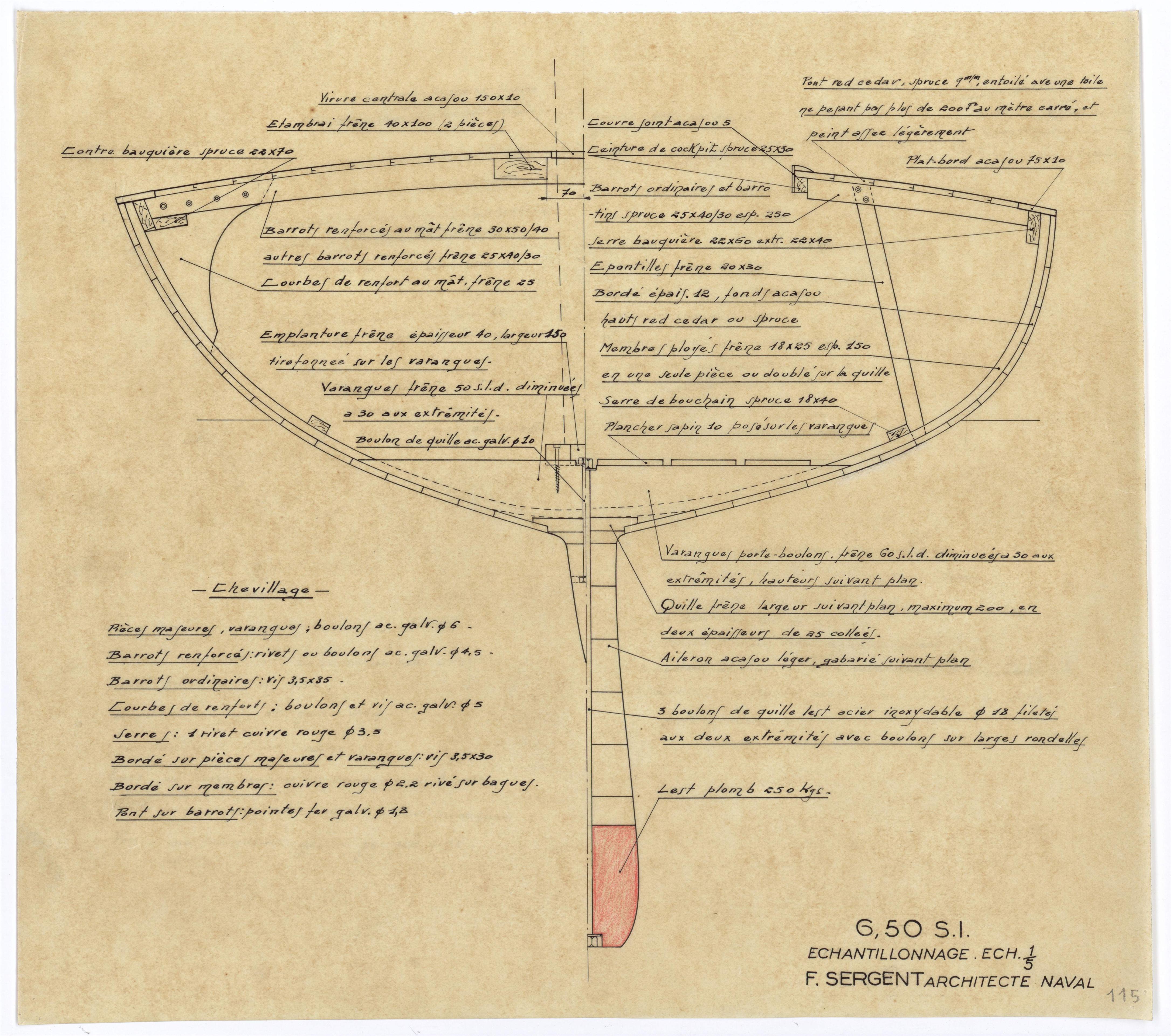 Les bénévoles des Archives du Yachting ont choisi d’utiliser des noms de plans susceptibles de convenir à d’autres fonds d’architectes navals à venir. Cela peut expliquer les différences d’appellation entre les noms donnés par François Sergent lui-même et ceux du site.