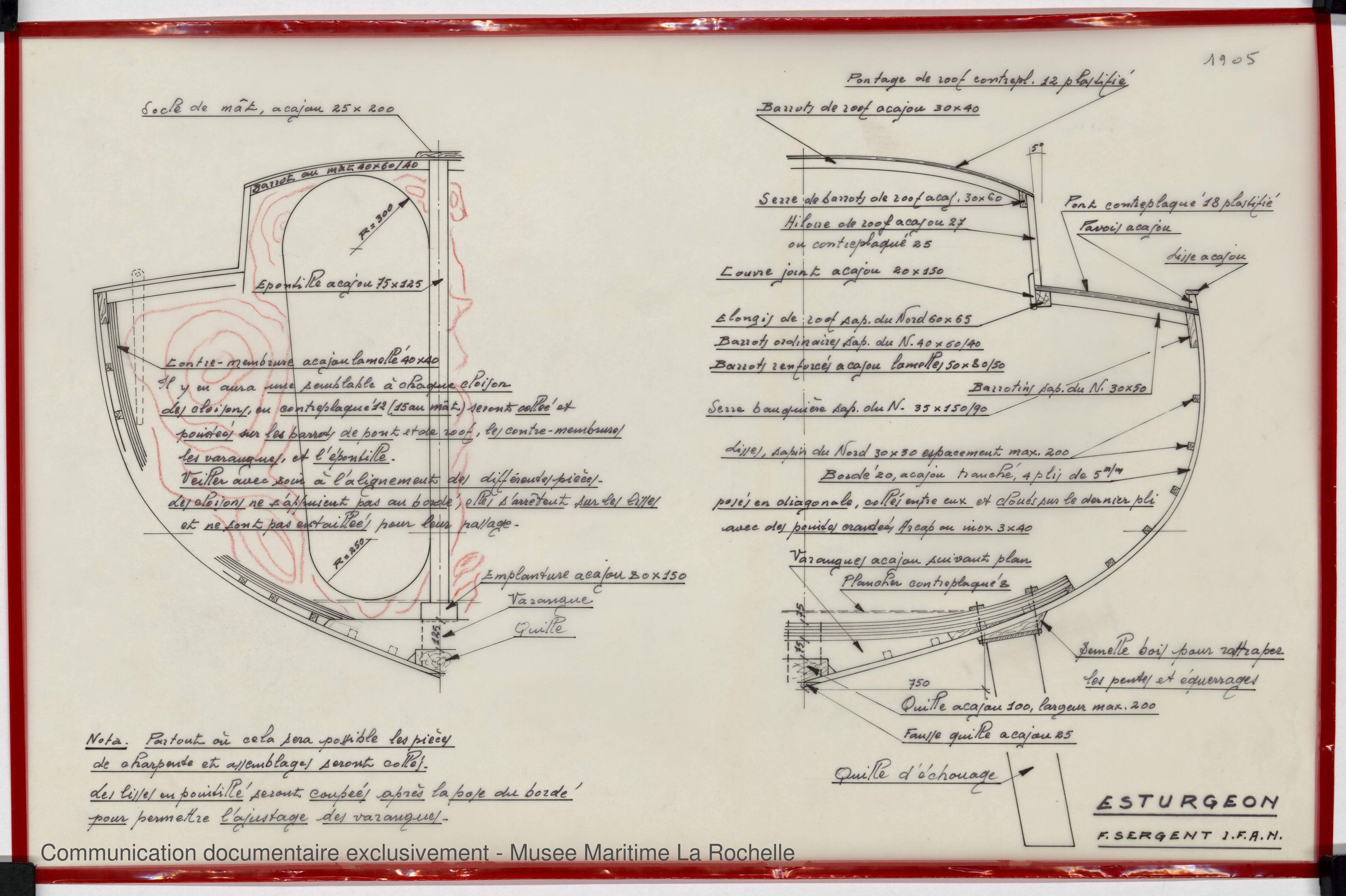Les bénévoles des Archives du Yachting ont choisi d’utiliser des noms de plans susceptibles de convenir à d’autres fonds d’architectes navals à venir. Cela peut expliquer les différences d’appellation entre les noms donnés par François Sergent lui-même et ceux du site.