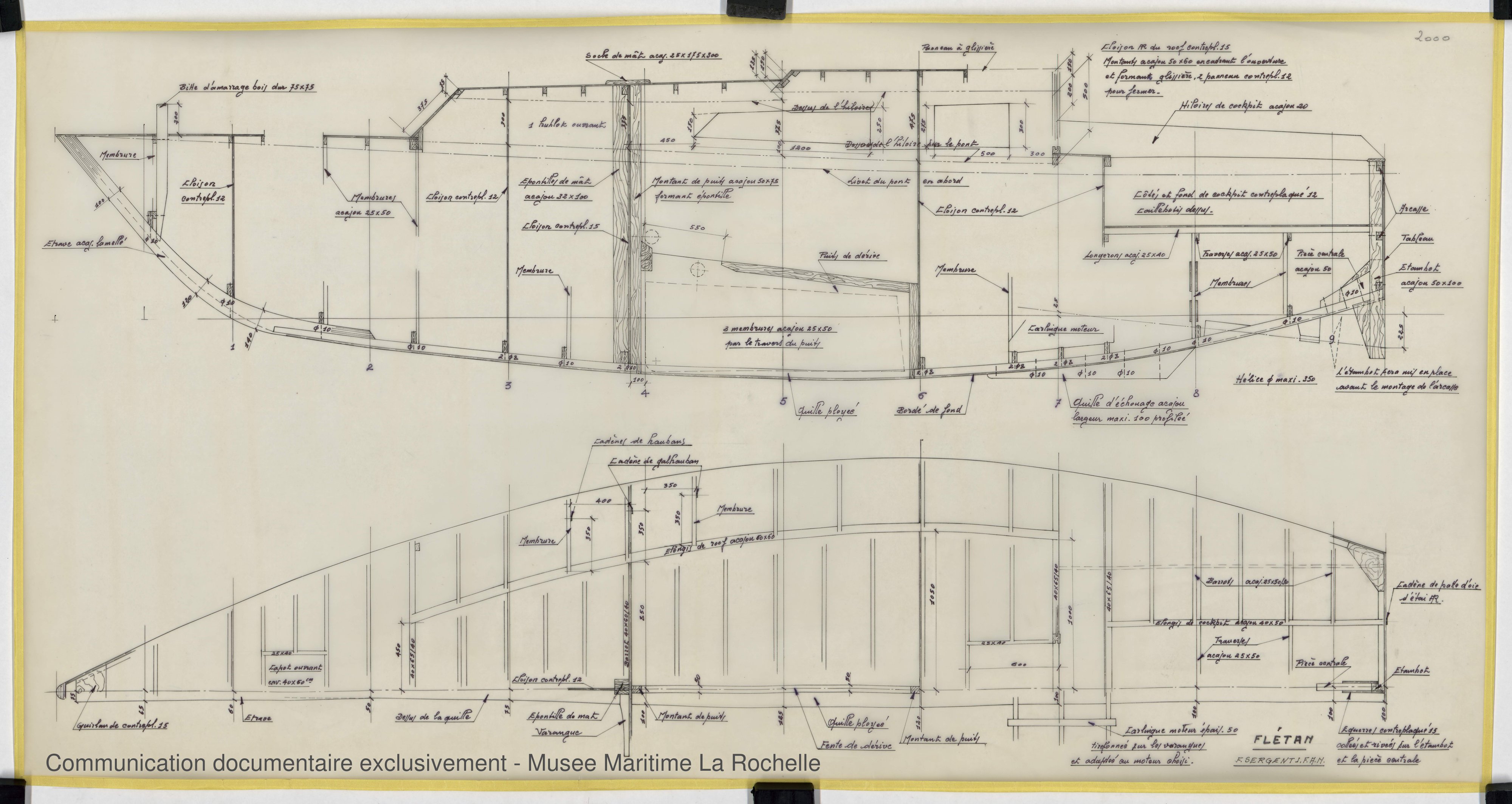 Les bénévoles des Archives du Yachting ont choisi d’utiliser des noms de plans susceptibles de convenir à d’autres fonds d’architectes navals à venir. Cela peut expliquer les différences d’appellation entre les noms donnés par François Sergent lui-même et ceux du site.