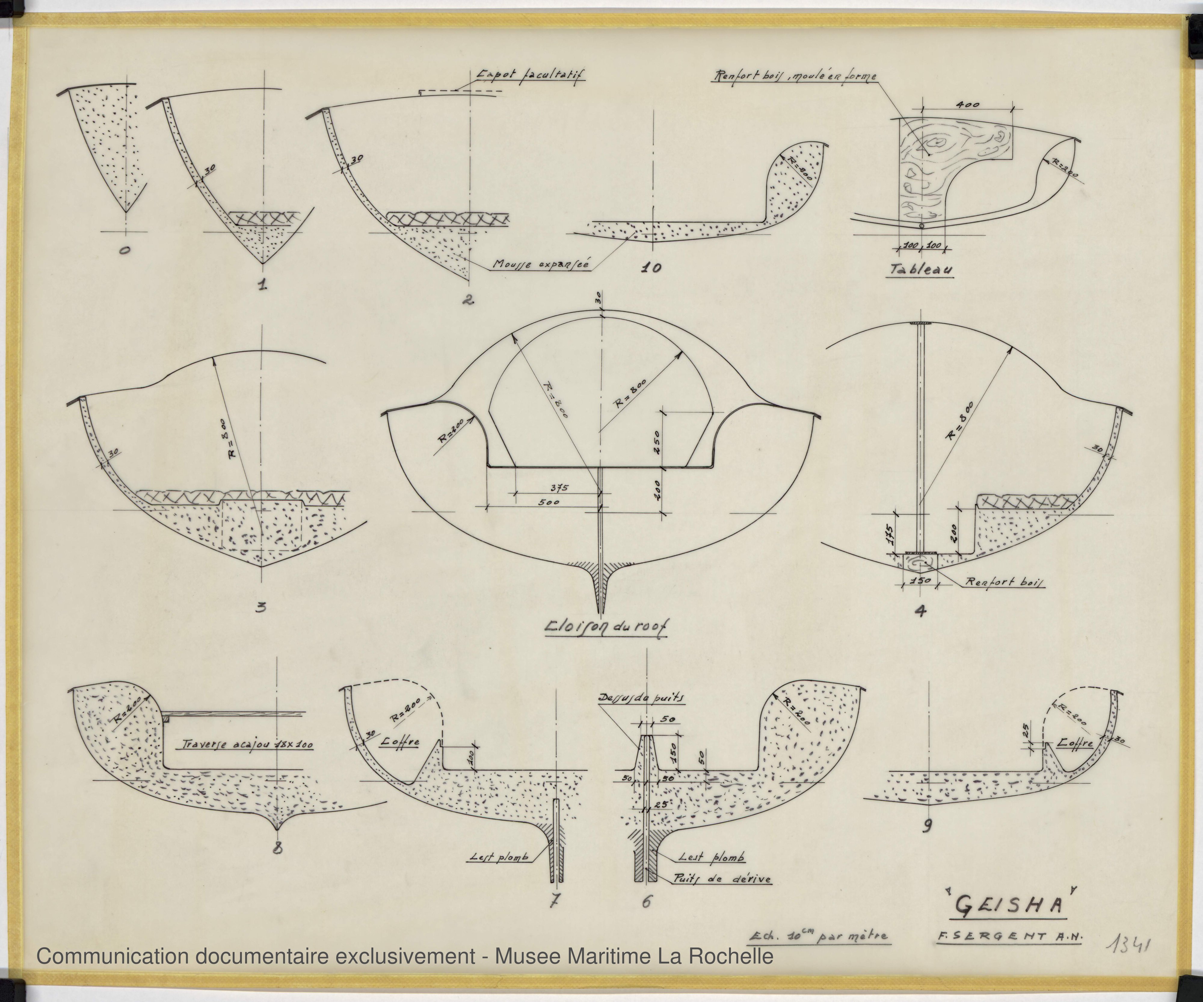 Les bénévoles des Archives du Yachting ont choisi d’utiliser des noms de plans susceptibles de convenir à d’autres fonds d’architectes navals à venir. Cela peut expliquer les différences d’appellation entre les noms donnés par François Sergent lui-même et ceux du site.