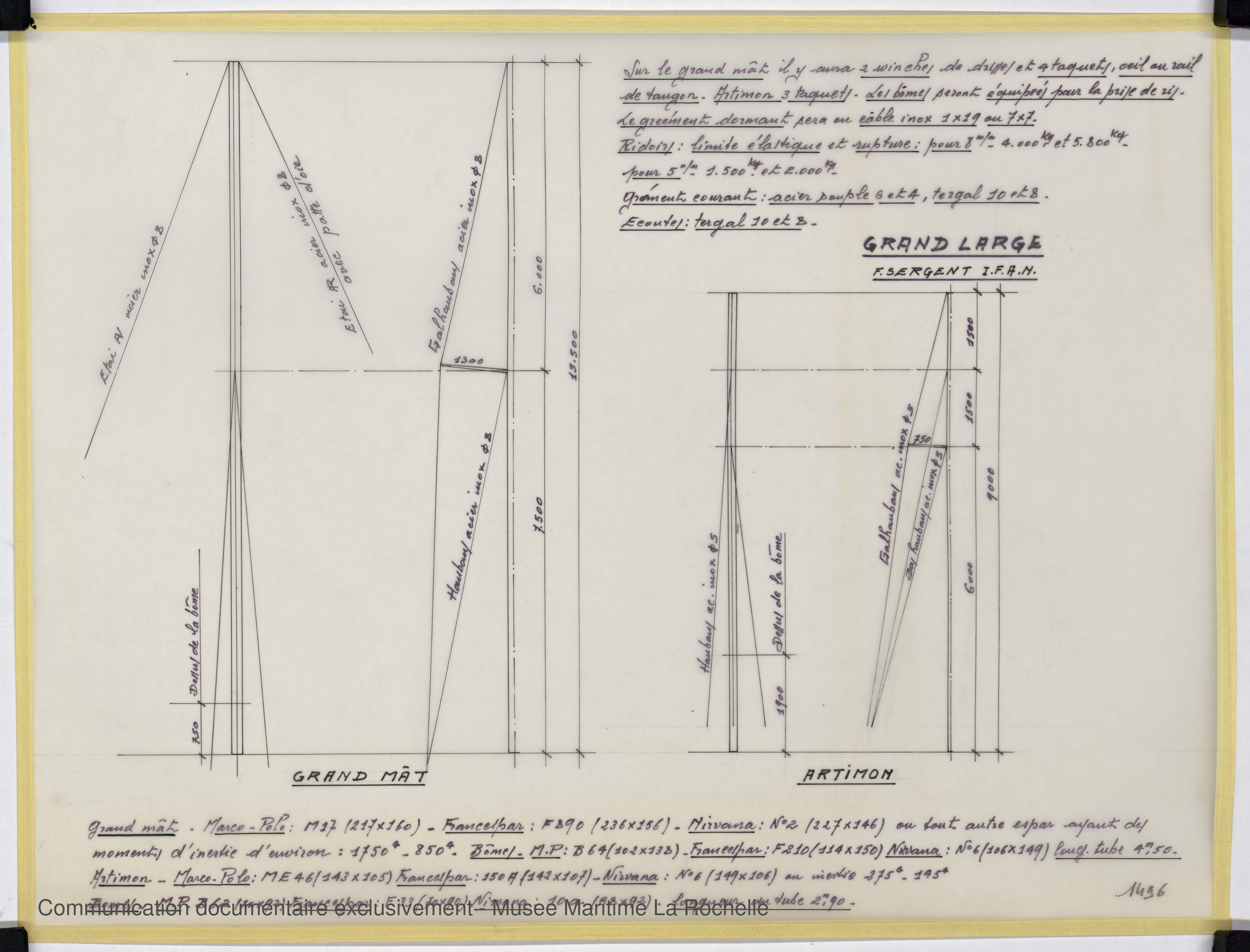 Les bénévoles des Archives du Yachting ont choisi d’utiliser des noms de plans susceptibles de convenir à d’autres fonds d’architectes navals à venir. Cela peut expliquer les différences d’appellation entre les noms donnés par François Sergent lui-même et ceux du site.