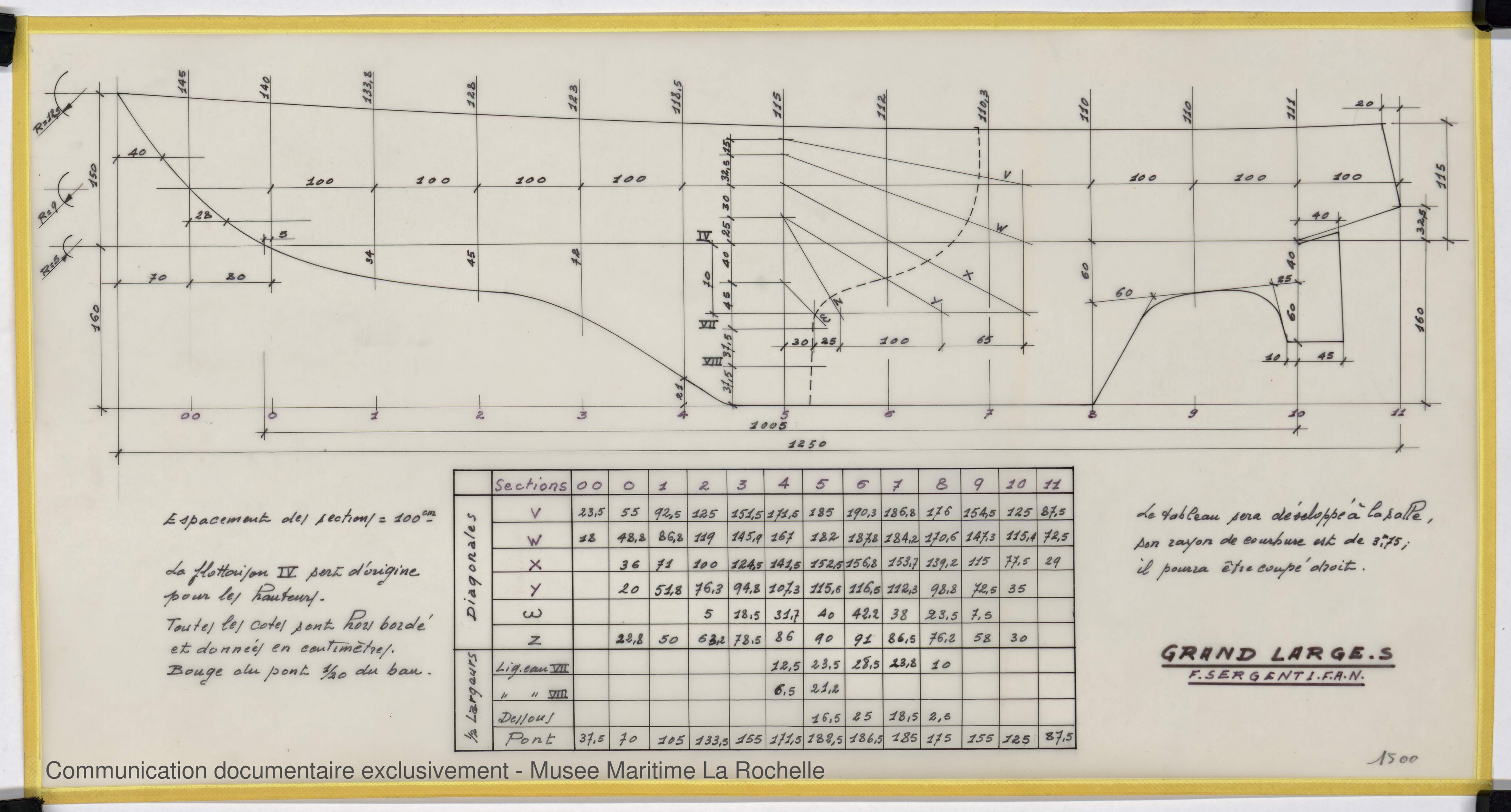 Les bénévoles des Archives du Yachting ont choisi d’utiliser des noms de plans susceptibles de convenir à d’autres fonds d’architectes navals à venir. Cela peut expliquer les différences d’appellation entre les noms donnés par François Sergent lui-même et ceux du site.