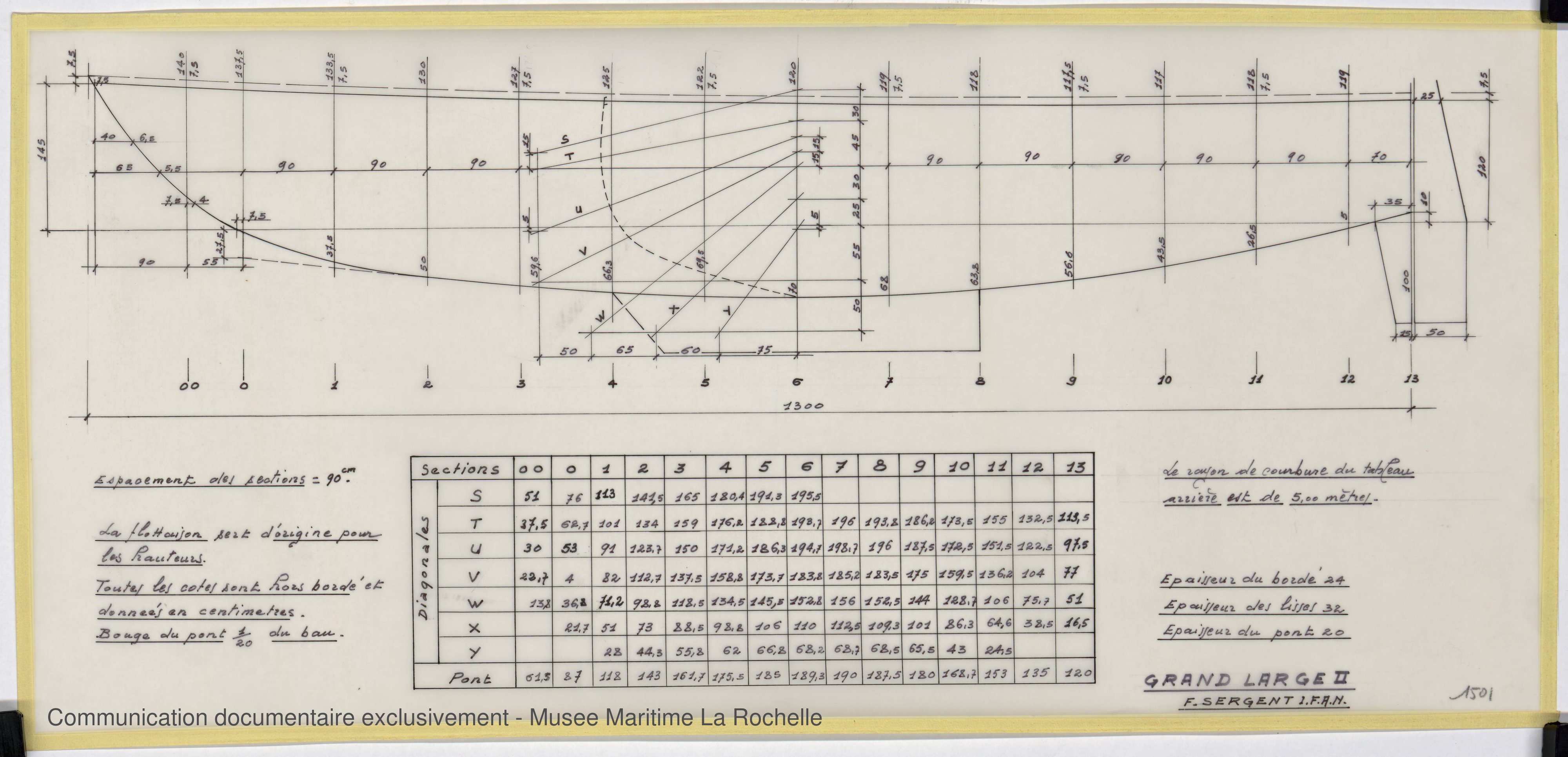 Les bénévoles des Archives du Yachting ont choisi d’utiliser des noms de plans susceptibles de convenir à d’autres fonds d’architectes navals à venir. Cela peut expliquer les différences d’appellation entre les noms donnés par François Sergent lui-même et ceux du site.