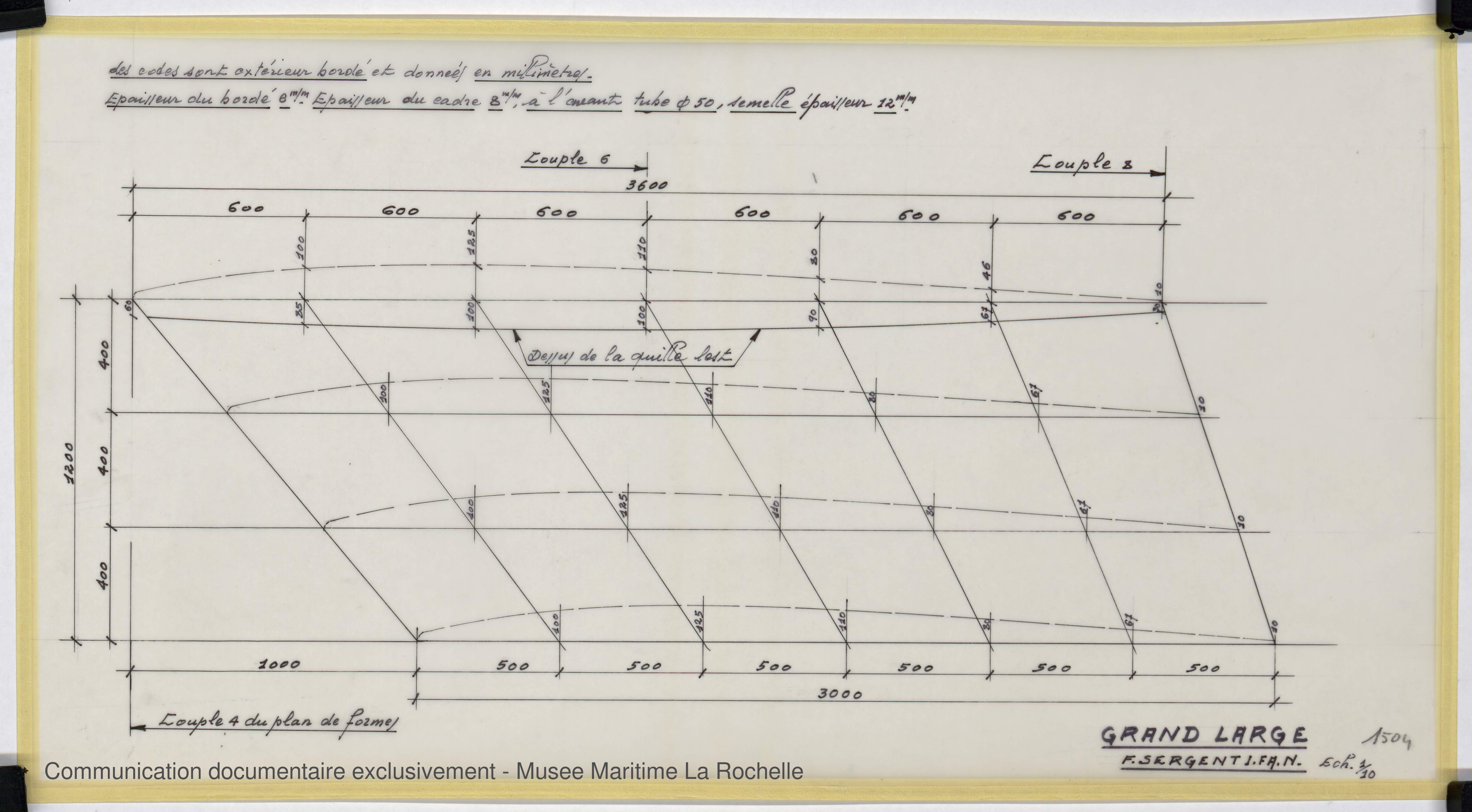Les bénévoles des Archives du Yachting ont choisi d’utiliser des noms de plans susceptibles de convenir à d’autres fonds d’architectes navals à venir. Cela peut expliquer les différences d’appellation entre les noms donnés par François Sergent lui-même et ceux du site.