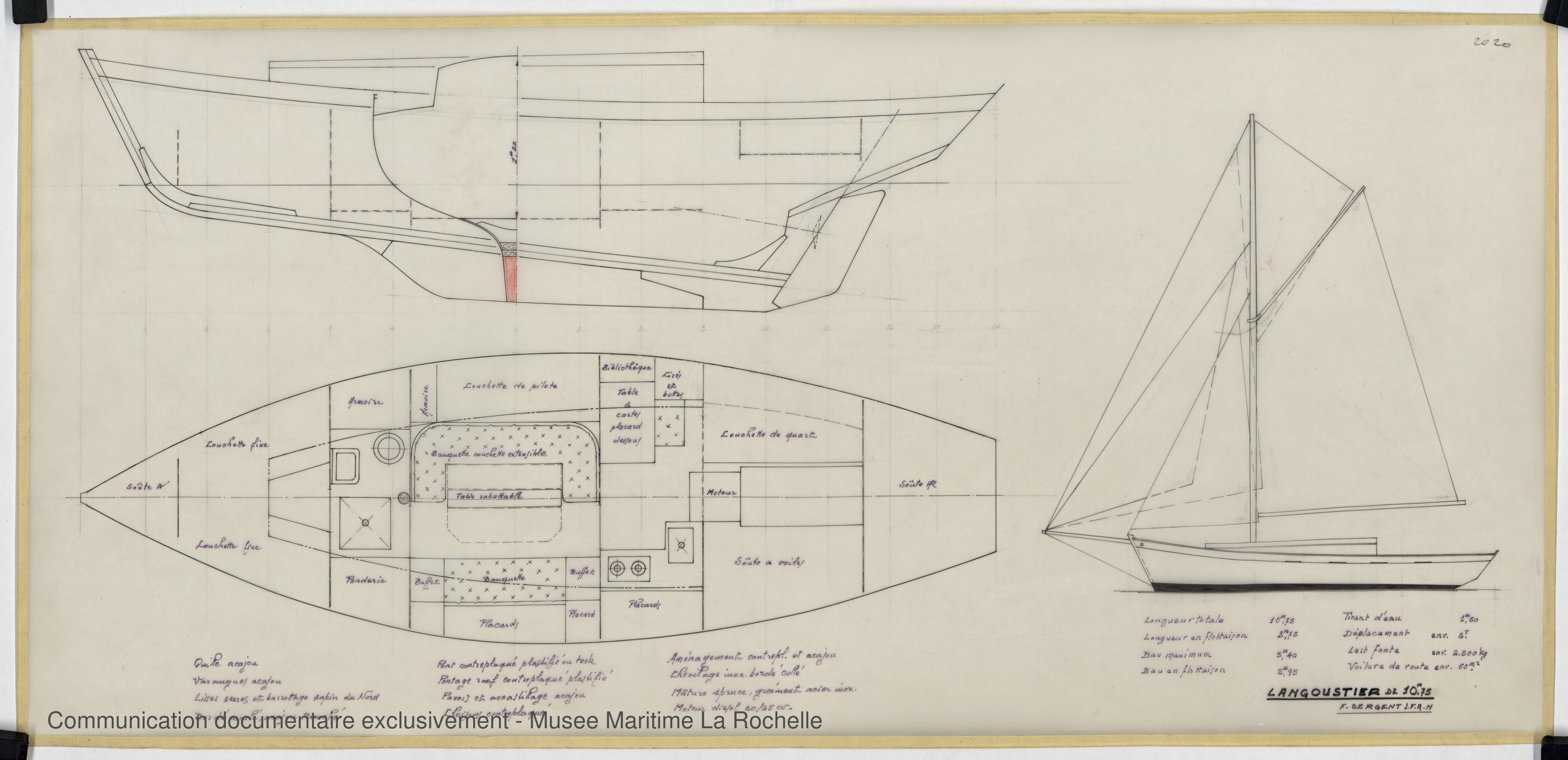 Les bénévoles des Archives du Yachting ont choisi d’utiliser des noms de plans susceptibles de convenir à d’autres fonds d’architectes navals à venir. Cela peut expliquer les différences d’appellation entre les noms donnés par François Sergent lui-même et ceux du site.