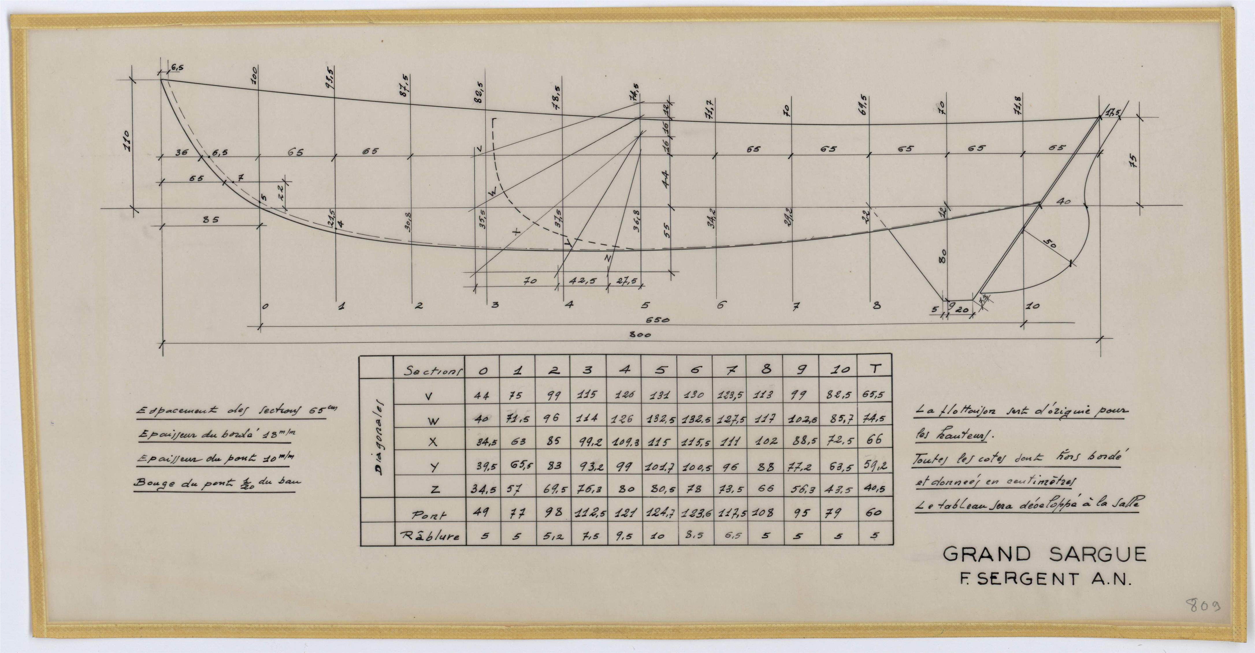 Les bénévoles des Archives du Yachting ont choisi d’utiliser des noms de plans susceptibles de convenir à d’autres fonds d’architectes navals à venir. Cela peut expliquer les différences d’appellation entre les noms donnés par François Sergent lui-même et ceux du site.