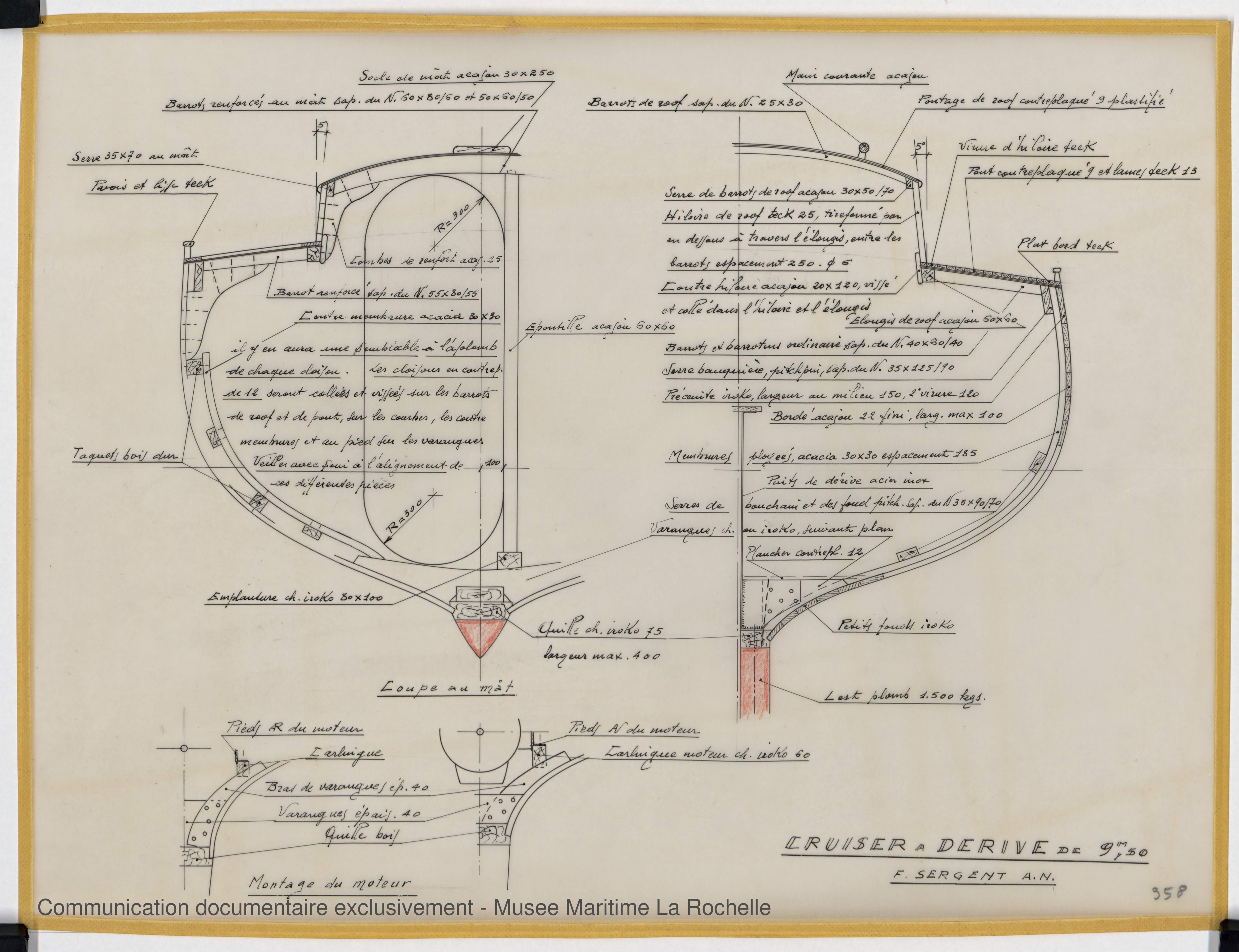Les bénévoles des Archives du Yachting ont choisi d’utiliser des noms de plans susceptibles de convenir à d’autres fonds d’architectes navals à venir. Cela peut expliquer les différences d’appellation entre les noms donnés par François Sergent lui-même et ceux du site.