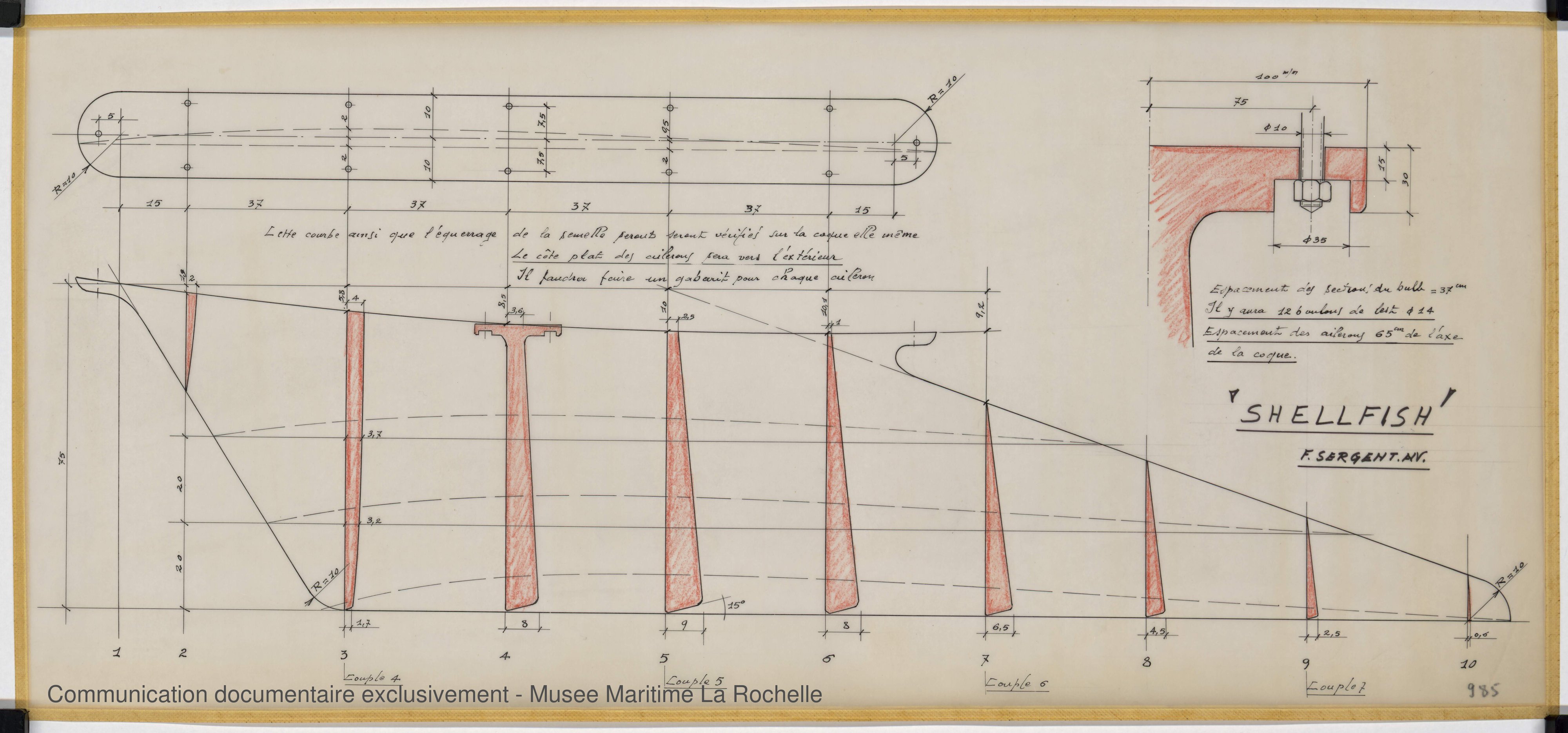 Les bénévoles des Archives du Yachting ont choisi d’utiliser des noms de plans susceptibles de convenir à d’autres fonds d’architectes navals à venir. Cela peut expliquer les différences d’appellation entre les noms donnés par François Sergent lui-même et ceux du site.