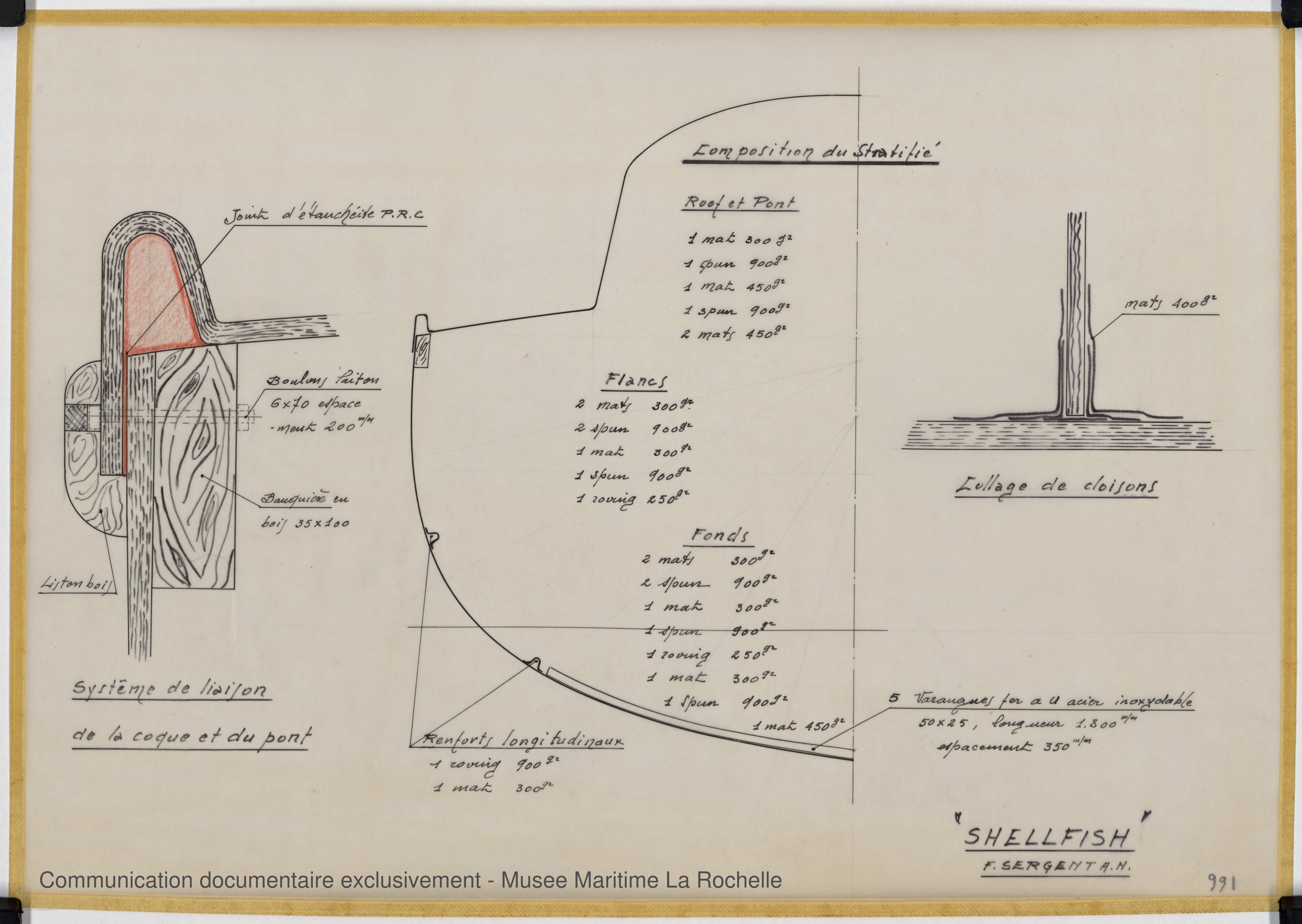 Les bénévoles des Archives du Yachting ont choisi d’utiliser des noms de plans susceptibles de convenir à d’autres fonds d’architectes navals à venir. Cela peut expliquer les différences d’appellation entre les noms donnés par François Sergent lui-même et ceux du site.