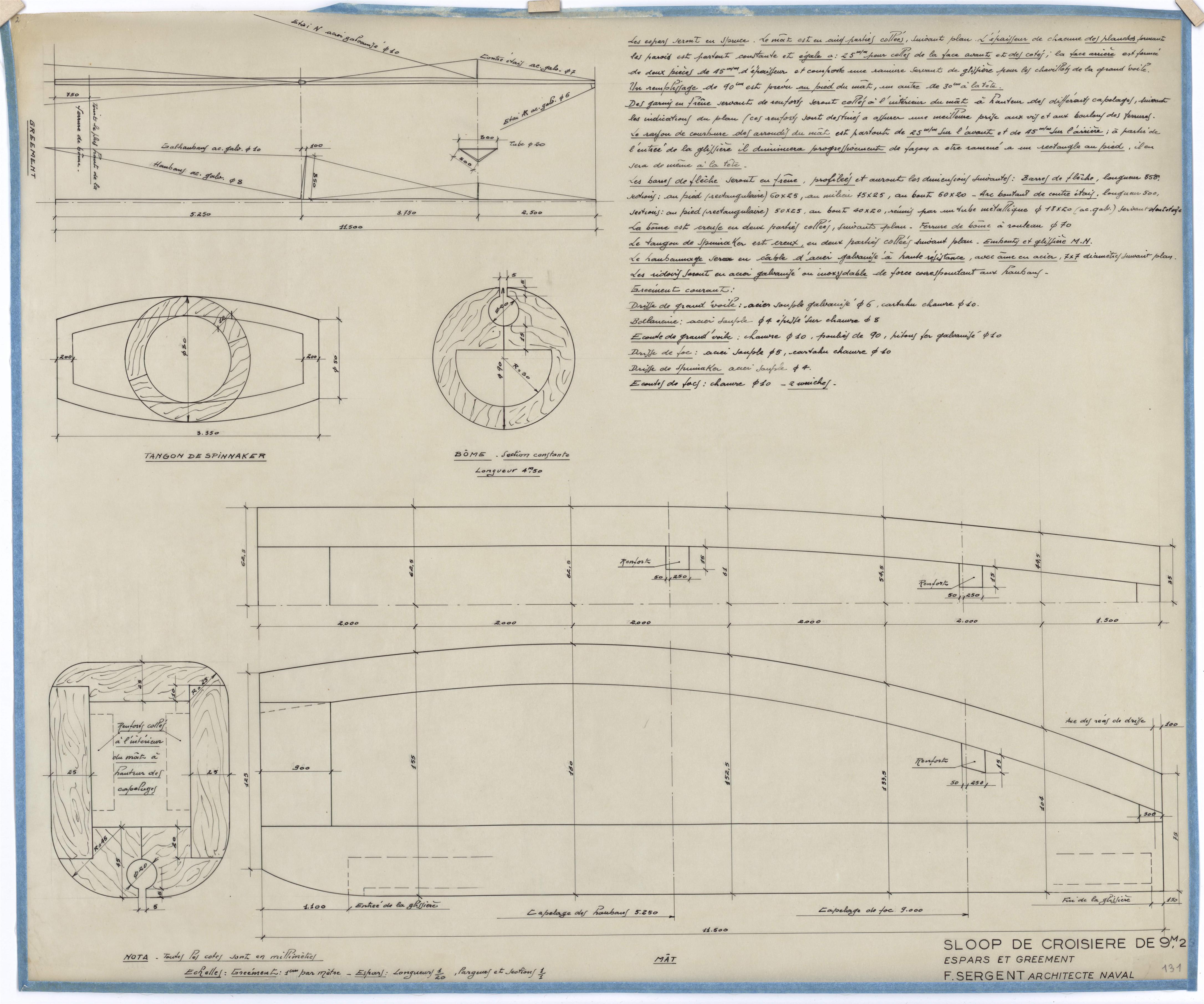 Les bénévoles des Archives du Yachting ont choisi d’utiliser des noms de plans susceptibles de convenir à d’autres fonds d’architectes navals à venir. Cela peut expliquer les différences d’appellation entre les noms donnés par François Sergent lui-même et ceux du site.