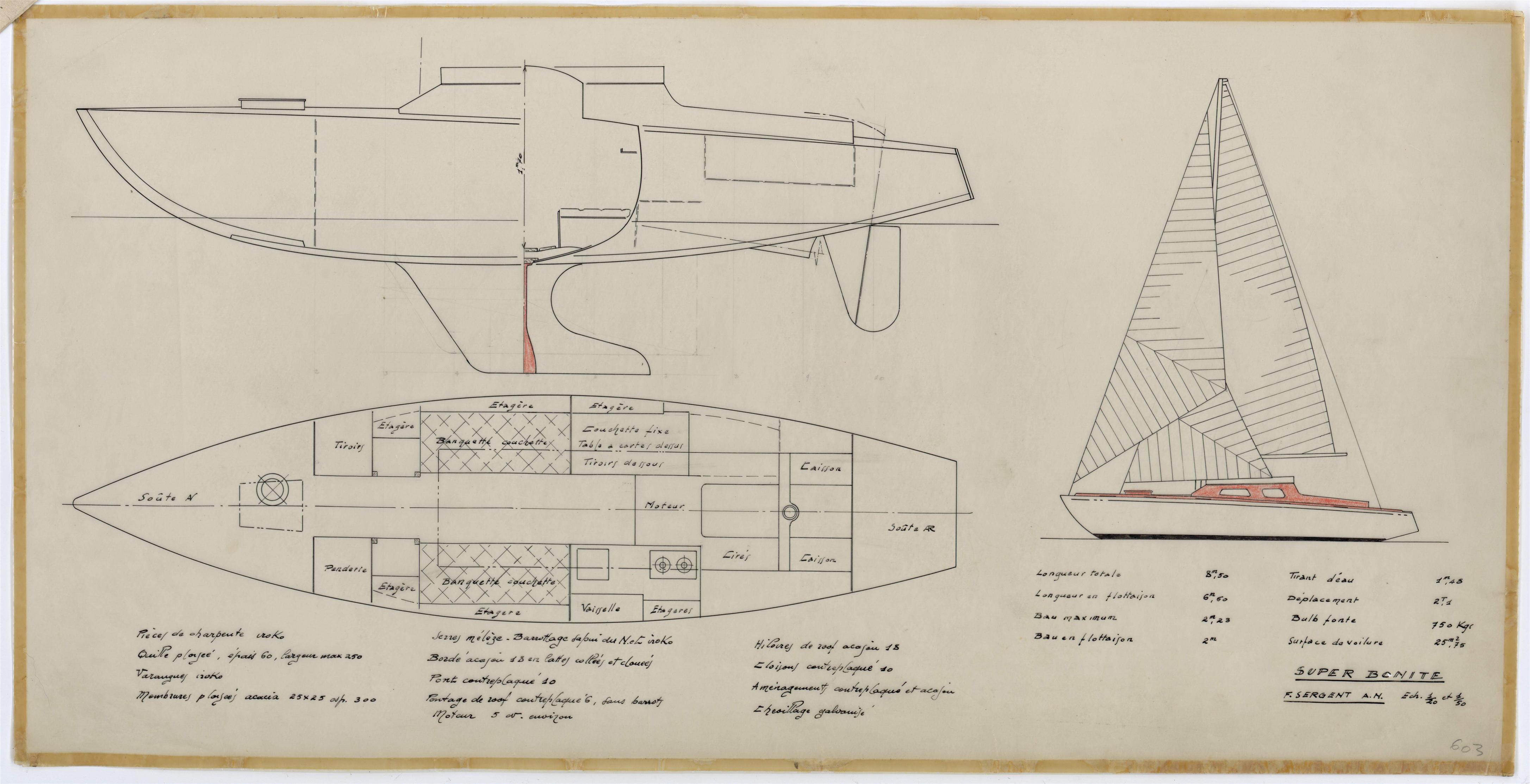 Les bénévoles des Archives du Yachting ont choisi d’utiliser des noms de plans susceptibles de convenir à d’autres fonds d’architectes navals à venir. Cela peut expliquer les différences d’appellation entre les noms donnés par François Sergent lui-même et ceux du site.