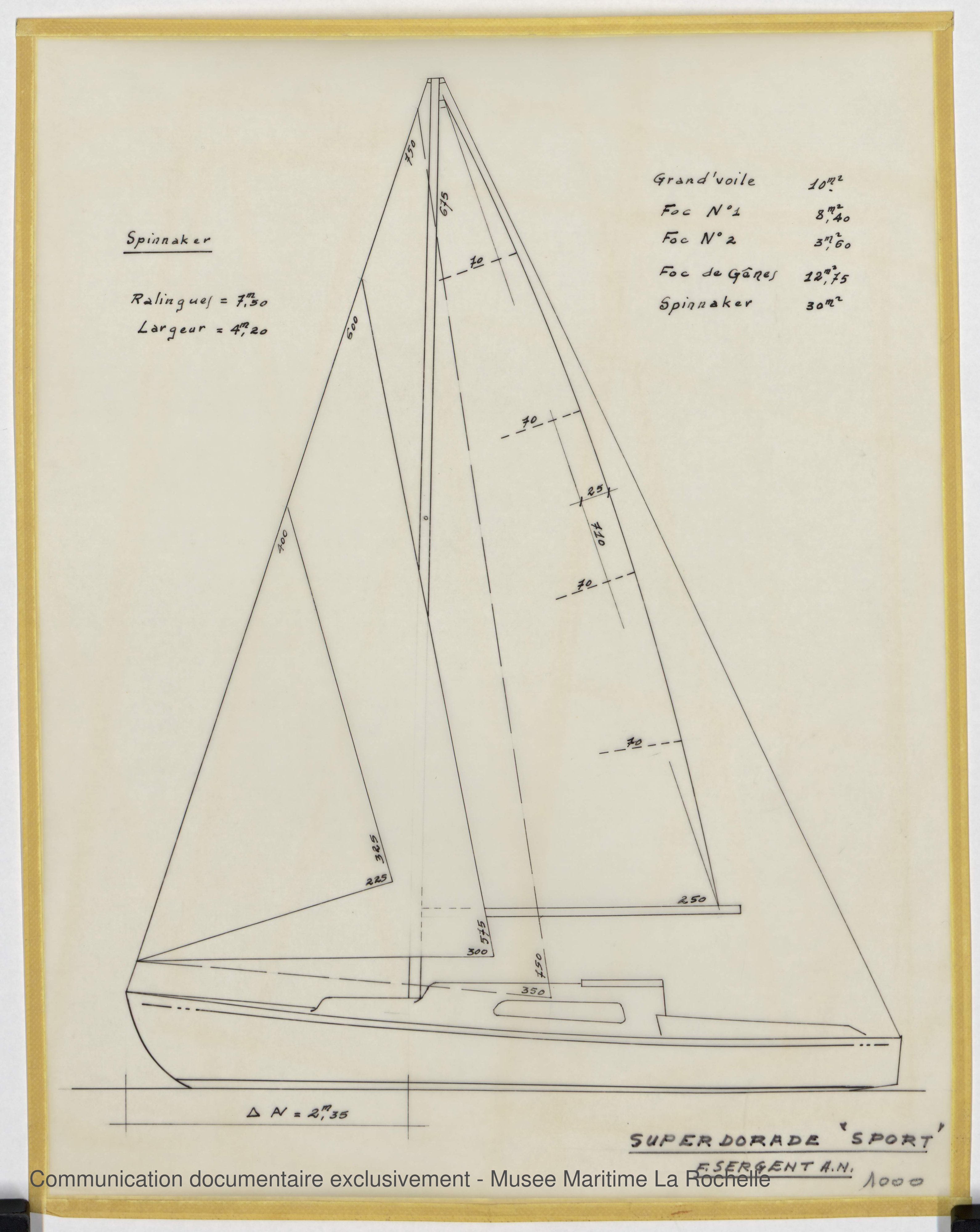 Les bénévoles des Archives du Yachting ont choisi d’utiliser des noms de plans susceptibles de convenir à d’autres fonds d’architectes navals à venir. Cela peut expliquer les différences d’appellation entre les noms donnés par François Sergent lui-même et ceux du site.