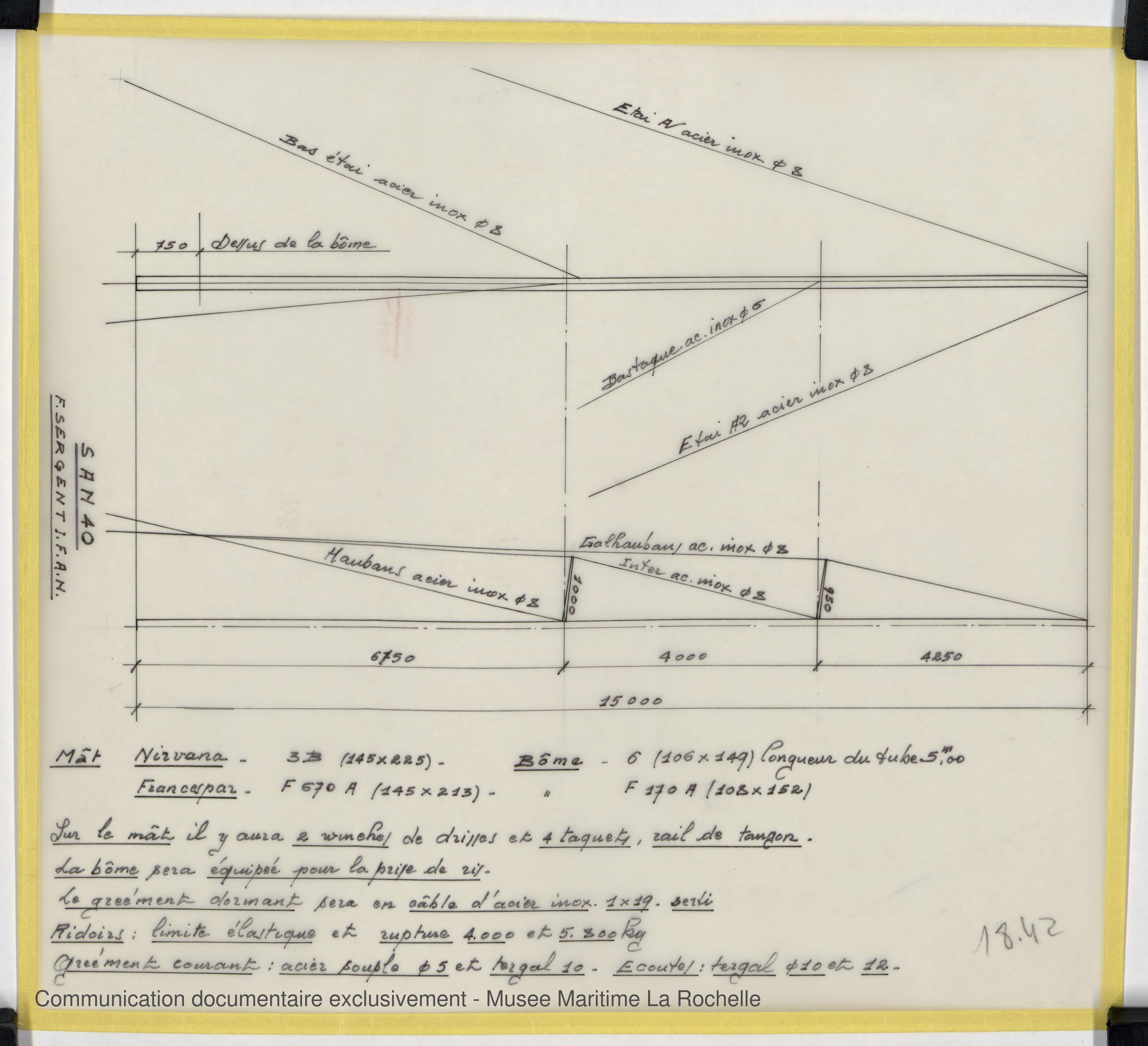 Les bénévoles des Archives du Yachting ont choisi d’utiliser des noms de plans susceptibles de convenir à d’autres fonds d’architectes navals à venir. Cela peut expliquer les différences d’appellation entre les noms donnés par François Sergent lui-même et ceux du site.