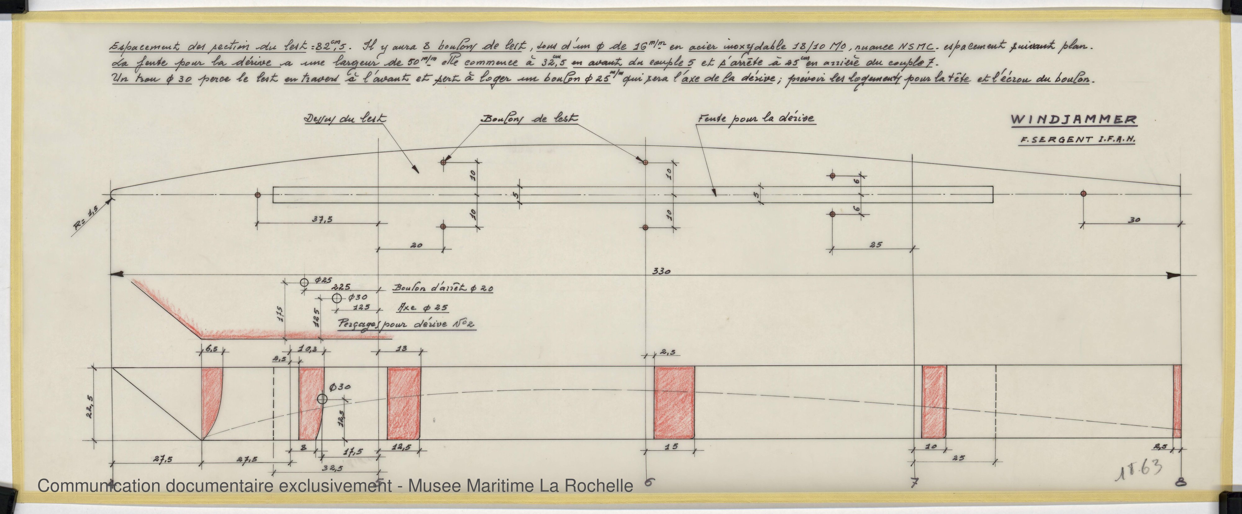 Les bénévoles des Archives du Yachting ont choisi d’utiliser des noms de plans susceptibles de convenir à d’autres fonds d’architectes navals à venir. Cela peut expliquer les différences d’appellation entre les noms donnés par François Sergent lui-même et ceux du site.